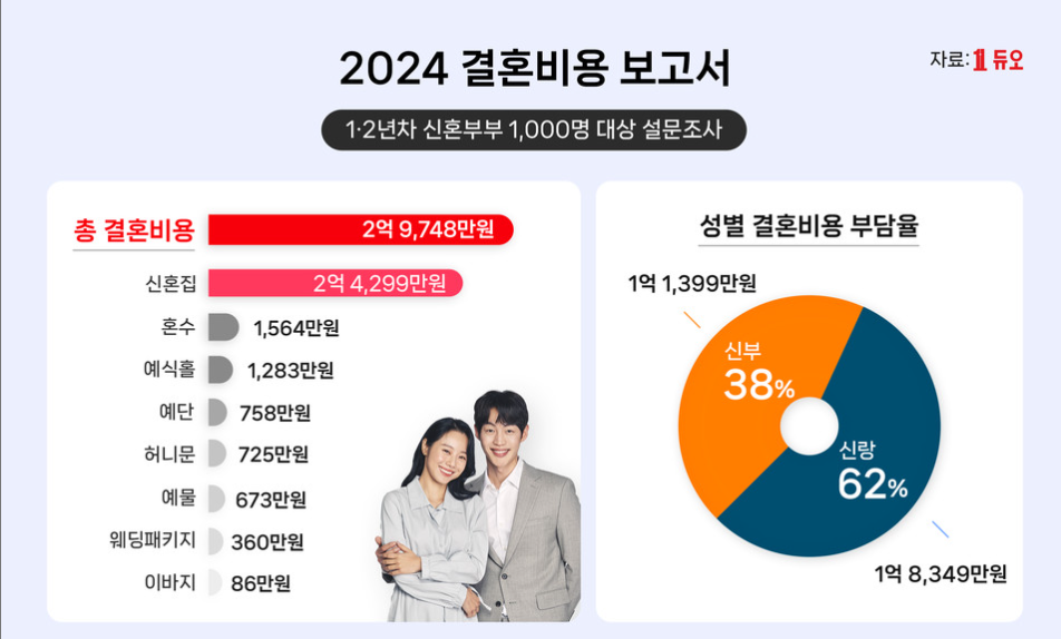 관련 출처 - "이러면 누가 결혼하겠나, 대한민국 평균 결혼비용 3억 돌파"