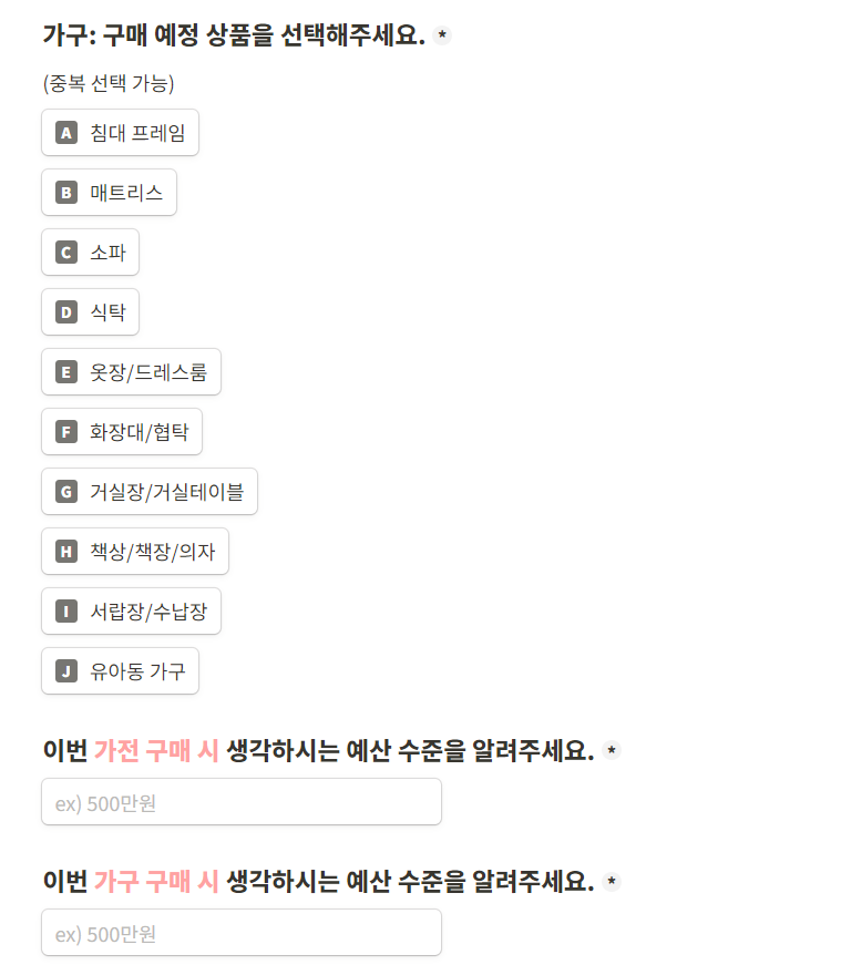 첫 가구, 가전 구매를 도와주었으면 할때 사용하는 상담입니다.