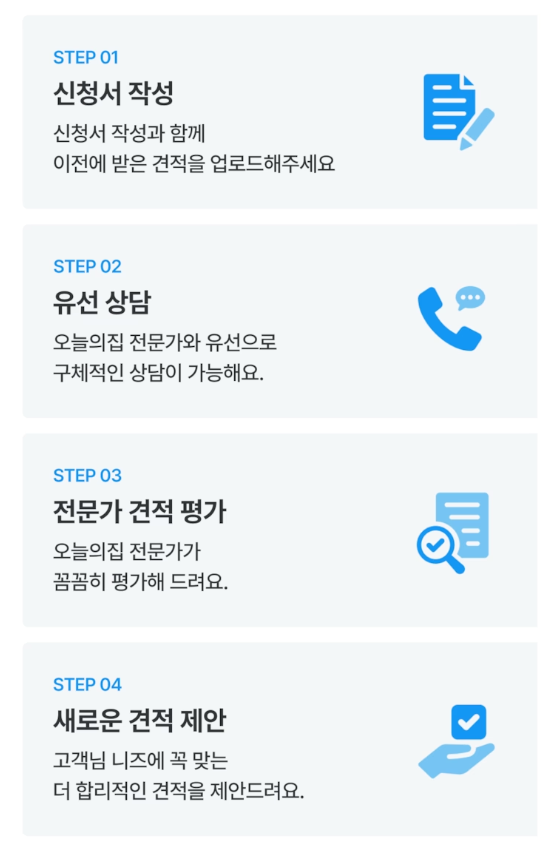 오늘의 집에서 이러한 비교 견적을 받을 수 있습니다!