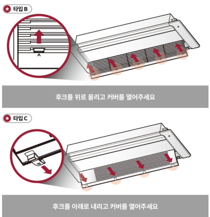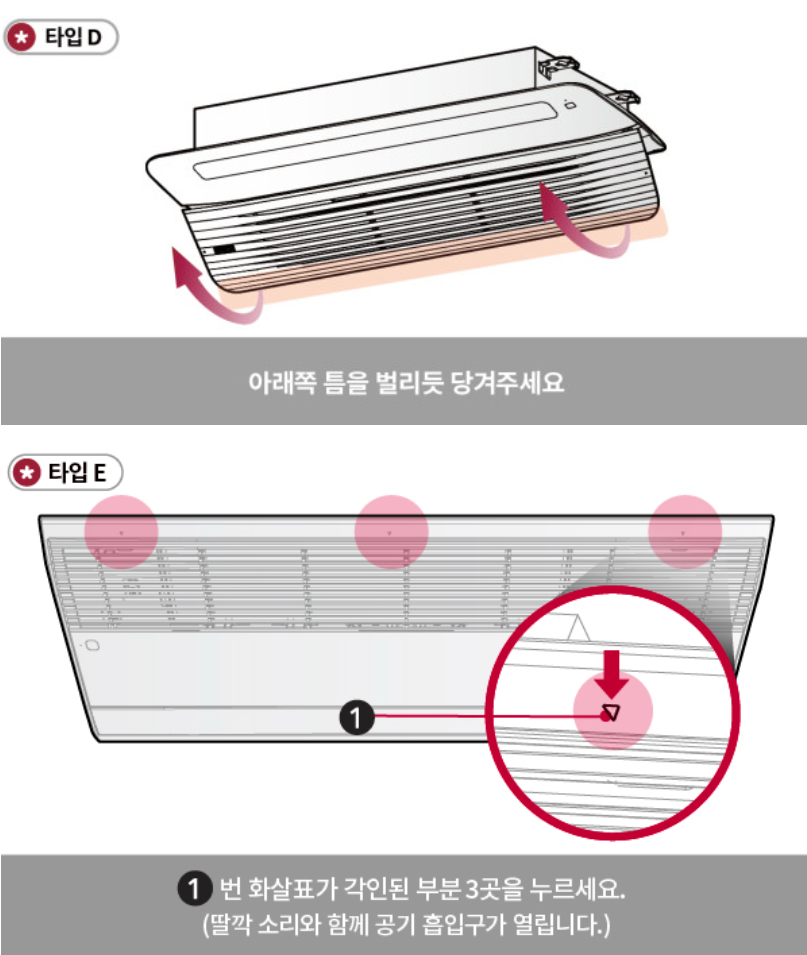 천장형 에어컨 1-way(그릴 타입,무빙 패널 타입) 필터 청소방법